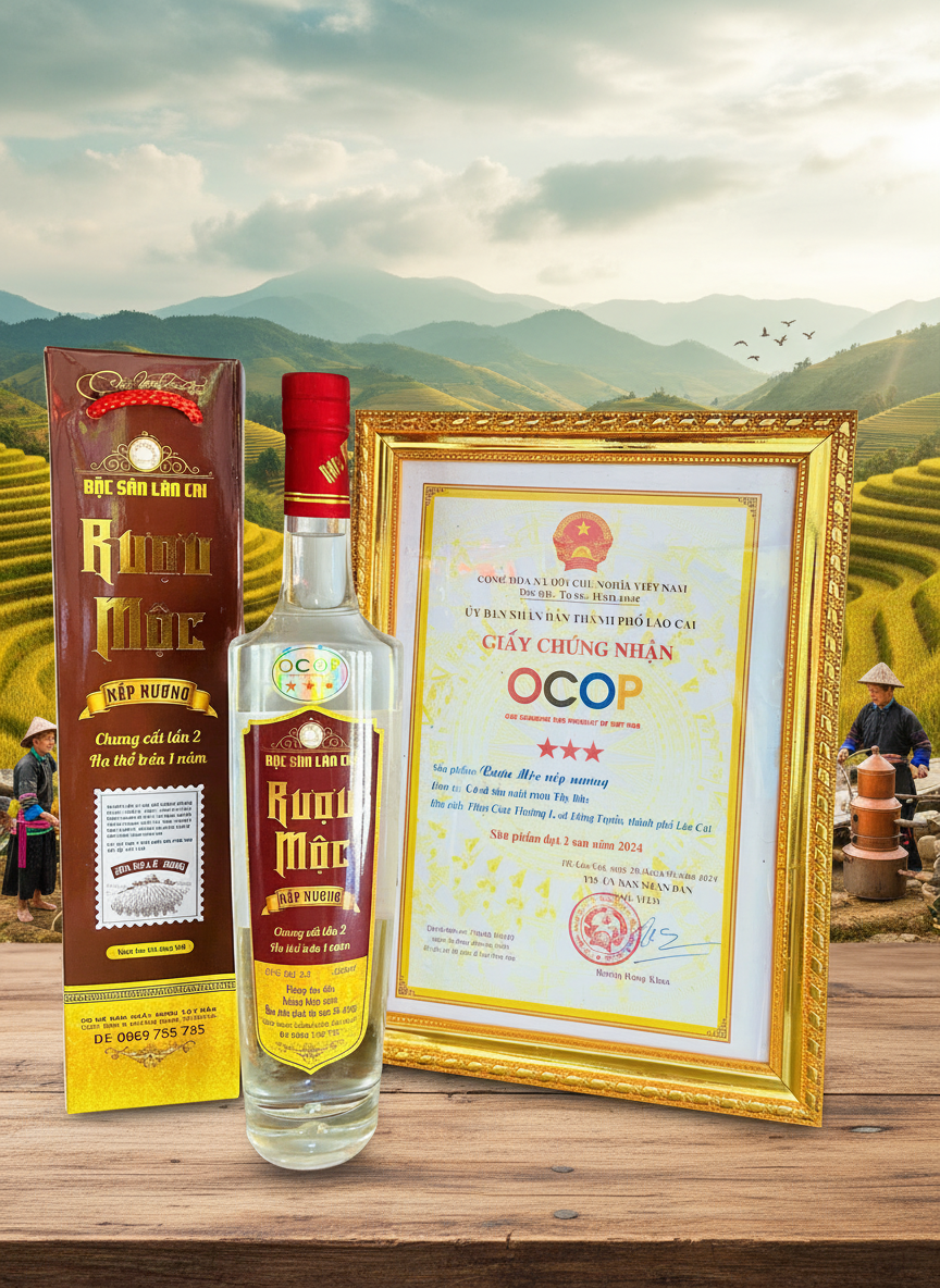 Giữa núi rừng Tây Bắc hùng vĩ, Rượu Mộc Lào Cai ra đời như một món quà tinh túy từ thiên nhiên và bàn tay khéo léo của người dân vùng cao. Sản phẩm được chưng cất thủ công từ men lá rừng tự nhiên, kết hợp cùng ngô nếp và gạo nương, tạo nên hương vị đặc trưng mà không loại rượu công nghiệp nào có thể sánh được.